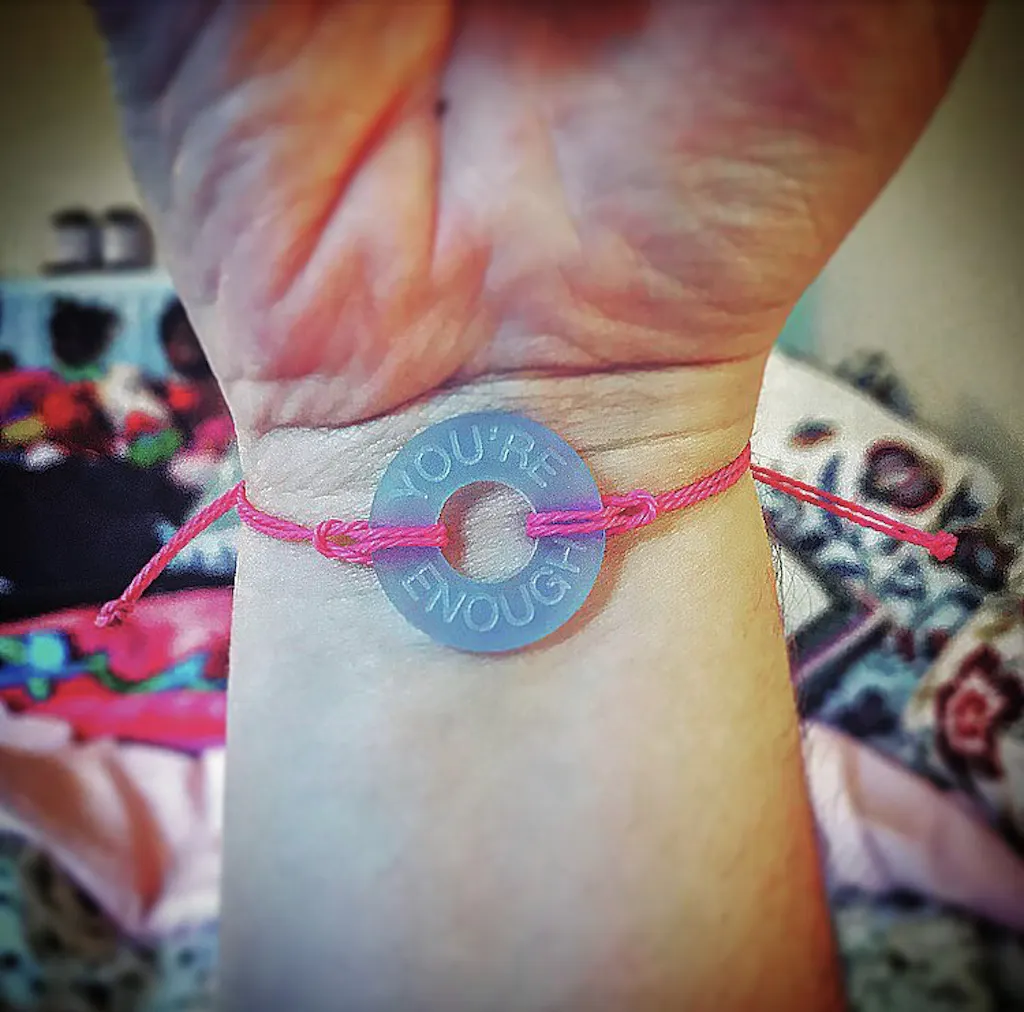 I wear this all the time. It’s simply gorgeous and a great reminder to stop, breathe and that you’re enough. When I work out how, I’ll upload a photo too.