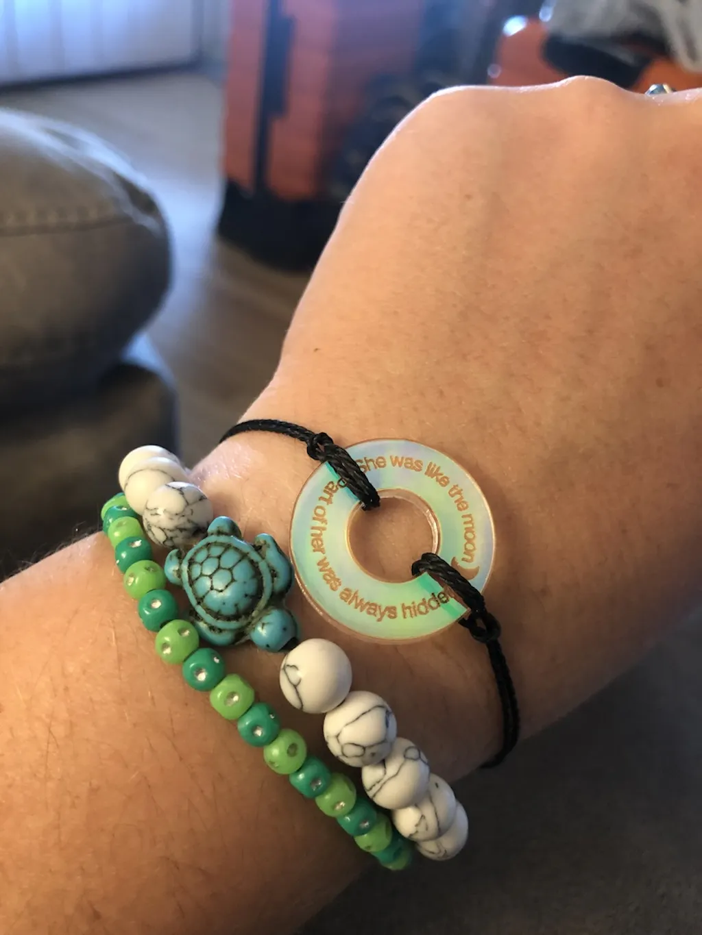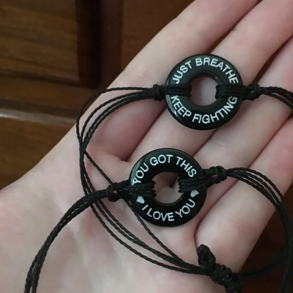 i bought a custom bracelet, with lyrics from one of my favorite songs as a reminder to keep going. the quality is great and always gives me a mood boost!